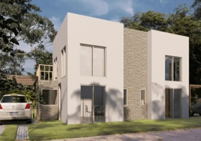 Obra en proceso que se compone de 2 dúplex de 65 m² c/u que se distribuye en 2 plantas. En 1° planta cocina comedor integrado a living con escalera de acceso hacia 2° en la cual habrá 2 dormitorios, uno con terraza y hall de distribución.